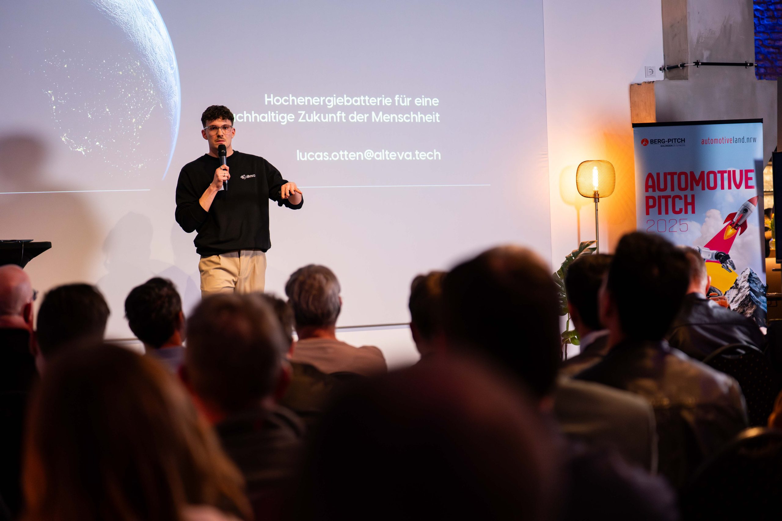 Fünf Startups präsentierten ihre Lösungen für die Mobilität von morgen und lieferten sich ein spannendes Rennen um die Top-Platzierungen. Alteva sicherte sich den ersten Platz mit einem smarten Energiemanagementsystem für elektrische Fahrzeuge – und erhielt neben Applaus auch ein Preisgeld sowie eine Fördermitgliedschaft bei automotiveland.nrw. Ebenfalls ausgezeichnet wurden FibreCoat, Nuraxys, xemX und summetix, die mit innovativen Geschäftsmodellen überzeugten und sich ein Vertriebstraining sowie ein Coworking-Paket sichern konnten. Die fünf Finalisten zeigten innerhalb ihrer sechs Minuten eindrucksvoll auf wie sie mit ihren innovativen Lösungen einen Beitrag in der Automotivebranche leisten können.