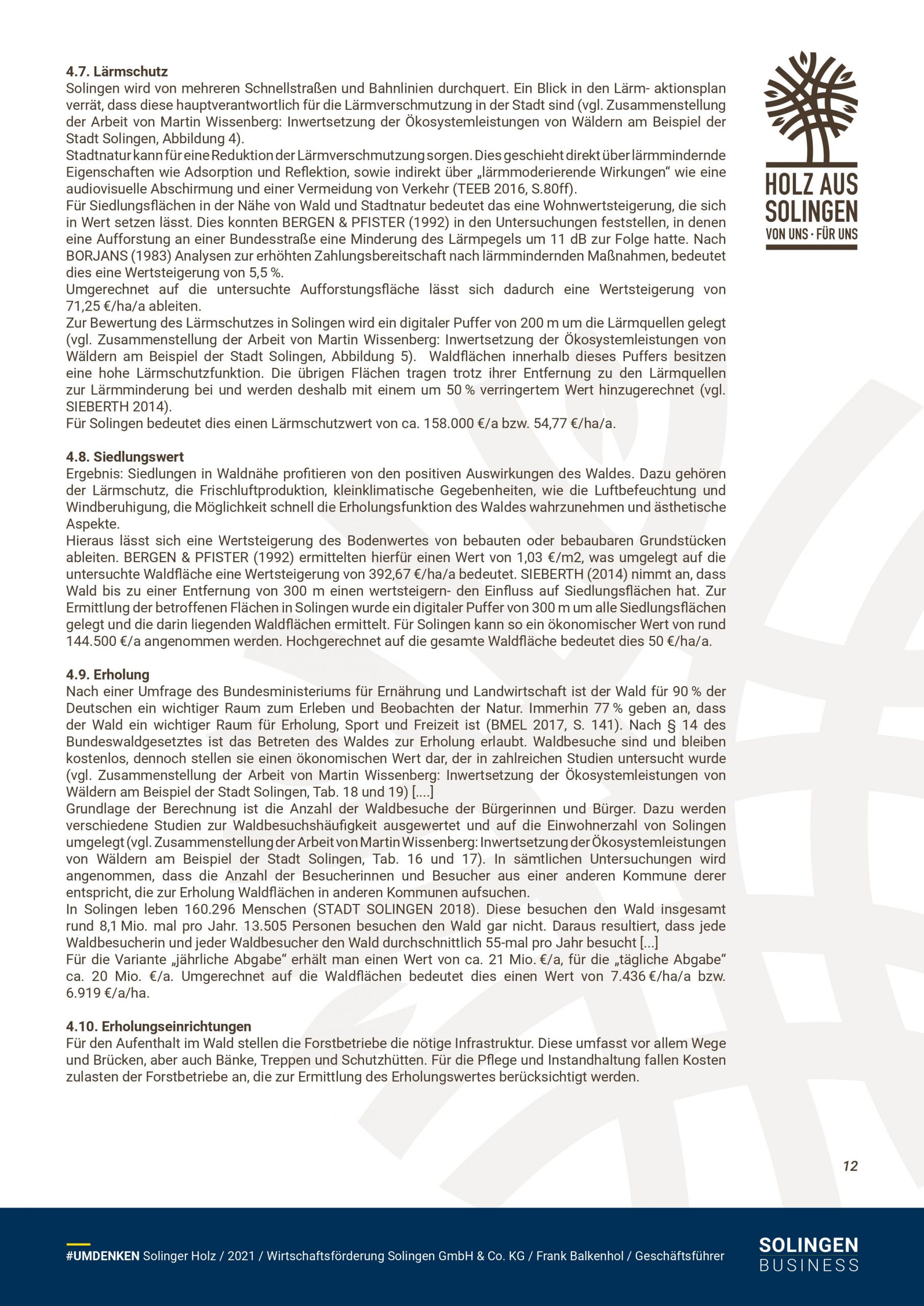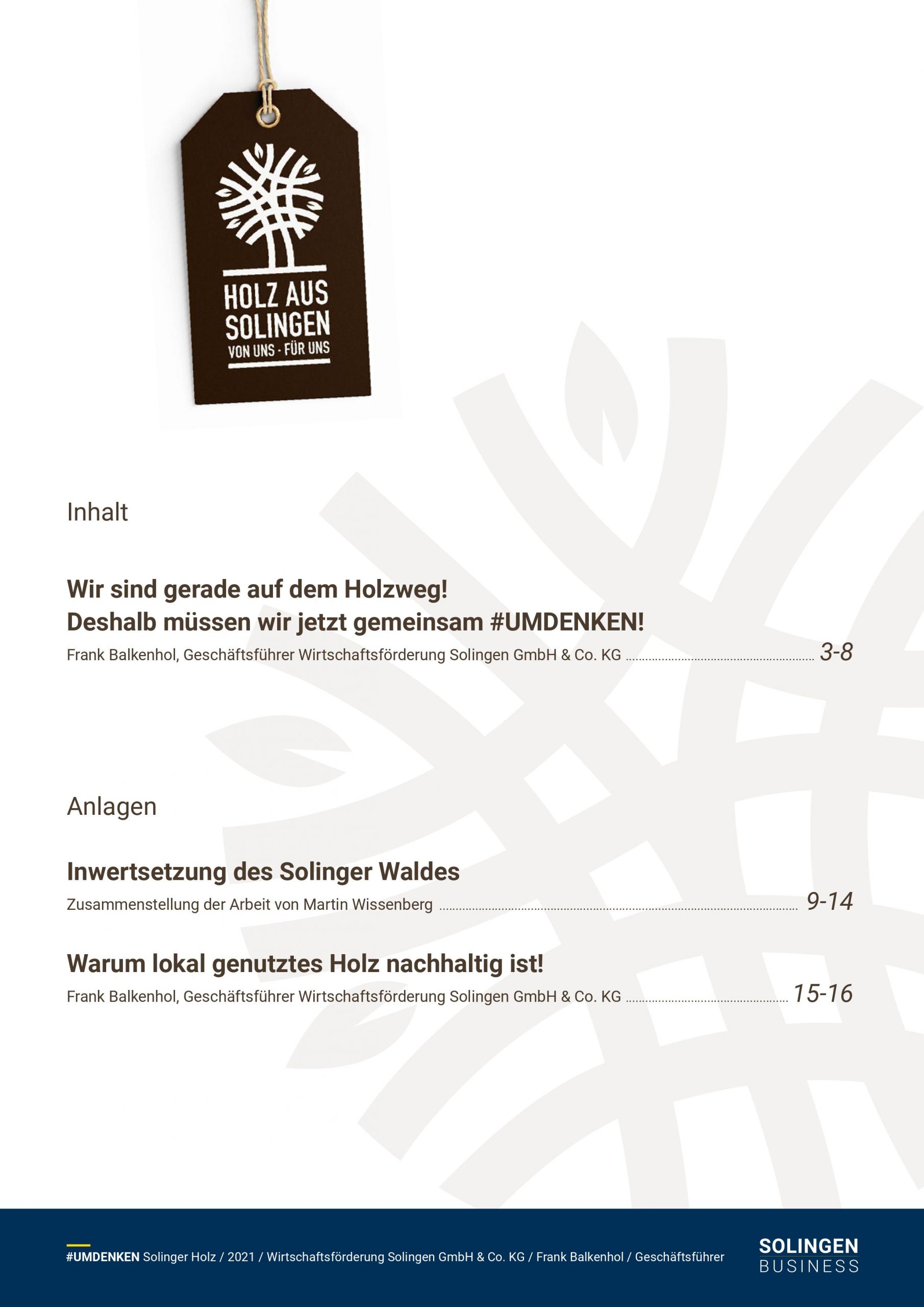 Titelbild, Personen von links: Frank Balkenhol (Geschäftsführer der Wirtschaftsförderung Solingen), Jochen Stiebel (Geschäftsführer Neuen Effizienz GmbH), Matthias Sinn (Stadtdienstleiter Natur und Umwelt Stadt Solingen), Moritz Kalkum (Geschäftsführender Gesellschafter Otto Kalkum & Söhne GmbH & Co. KG), Markus Schlösser (Abteilungsleiter Wald und Landschaft Stadt Solingen), Tim O. Kurzbach (Oberbürgermeister der Stadt Solingen), Christoph Dorenbeck (Abteilungsleiter Teilbetrieb Tiefbau und Verkehr, Technische Betriebe Solingen), Dr. Ing. Tim Katzwinkel (Institut für Produkt-Innovationen, Bergische Universität Wuppertal), Uwe Stricker (Geschäftsführer Sägewerk Stricker), Martin Wegner (Leiter Technische Betriebe Solingen), Alexander Herpich (Prokurist Entsorgung Solingen GmbH), Sven Stricker (Geschäftsführer Zimmerei Sven Stricker)