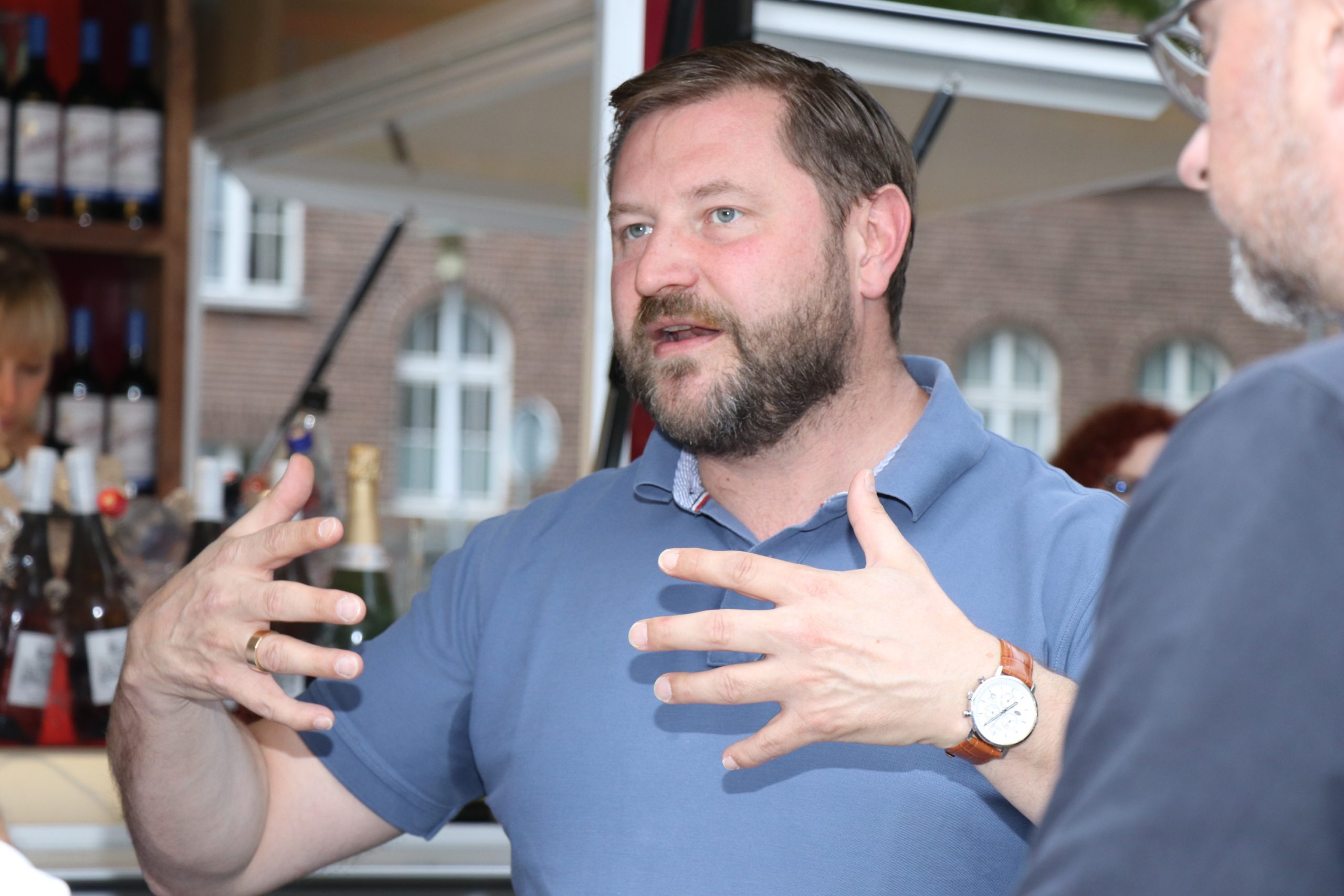 Der Bustransfer führte weiter nach Ohligs. Auf dem Weg wurden zahlreiche geplante bzw. bereits umgesetzte Projekte vorgestellt wie zum Beispiel das Adient-Areal, das alte Rathaus Ohligs und das Galileum. Projekte in anderen Stadtteilen, die ob des straffen Programmes nicht besucht werden konnten, wurden ebenfalls erläutert. Beim Zwischenstopp am Firmensitz der codecentric AG wurden die Entwicklungsansätze rund um den Solinger Hauptbahnhof erläutert. Erfolgreiche Entwicklungen der letzten Jahre sollen in den nächsten Jahren gezielt ergänzt werden, um so ein inspirierendes Umfeld für Firmen und Mitarbeitende zu schaffen und darüber Strahlkraft und Sogwirkung zu entfalten. Nur wenige Minuten entfernt folgte die Besichtigung des neuen Standorts an der Prinzenstraße 2a, welcher aktuell von Mirko Novakovic entwickelt wird. Die Teilnehmenden konnten die zukünftigen Entwicklungen live erleben. Sie erhielten zudem von Mitarbeitenden der Orangery einen ersten Einblick in die attraktiven und flexiblen Büroarbeitsplätze, die hier auf hohem Niveau angeboten werden. Am Ohligser Markt an der „MAKU Weinbar“ tauschten sich die Teilnehmenden mit Gloria Göllmann von der Immobilienstandort-Gemeinschaft (ISG) sowie Jörg Wacker von den „Ohligser Jongens“ aus und konnten die positiven Entwicklungen der Angebots- und Aufenthaltsqualität erleben.