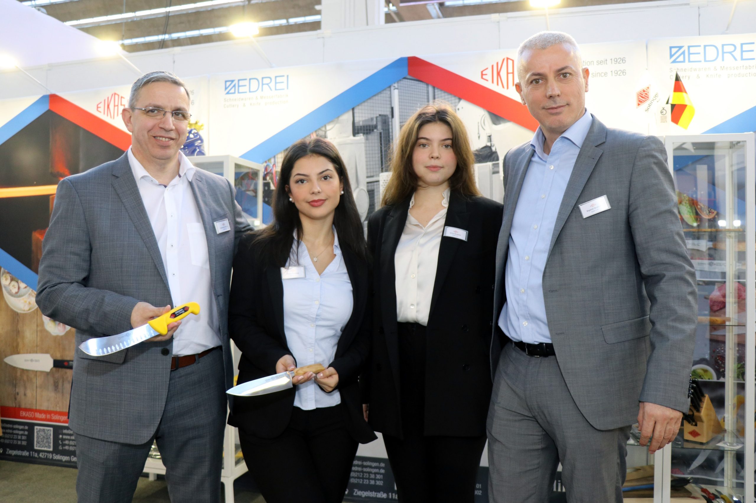 Das Solinger Unternehmen produziert unter anderem Küchen- und Schlachtermesser und hat die Marke EIKASO vor einigen Jahren von der Firma Eickenberg übernommen. Zudem bieten die Solinger Spezialisten ihre Expertise im Bereich des Schleifens auch für externe Kunden an. Die Firma EDREI hat ihren Sitz an der Ziegelstraße. Der Schneidwarenhersteller beschäftigt rund 25 Mitarbeiter. „Die Messe war für uns sehr erfolgreich, wir haben sogar einen Preis gewonnen“, freute sich Shpend Ibrahimi auch über die Verleihung des „German Design Award Special 2023“.