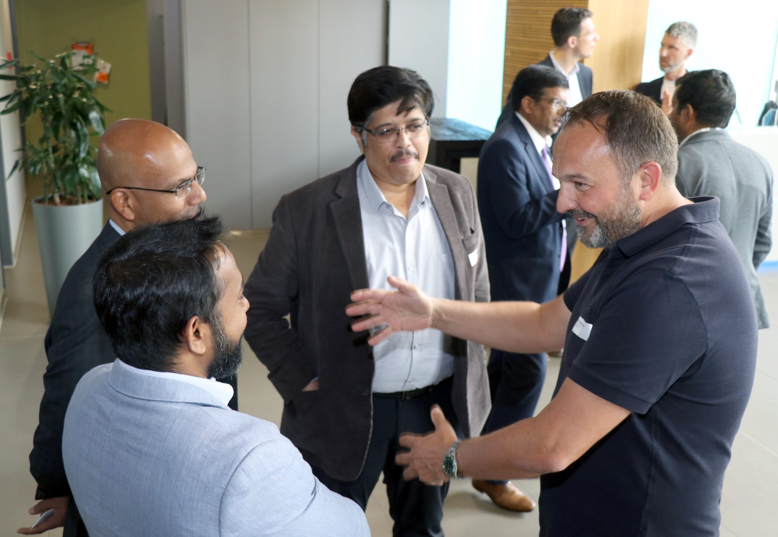 Die NASSCOM-Delegation wurde angeführt von Gagan Sabharwal, dem Chef des indischen IT-Netzwerkes mit mehr als 3.000 Mitgliedern. Begleitet wurde sie zudem vom indischen Consul Vinaod Kumar. Beide erklärten in Ihren Antrittsreden ihr hohes Interesse an wirtschaftlicher Kooperation. Stephanie Beeres von NRW.Global Business stellte den Fokus des Landes Nordrhein-Westfalen für Ansiedlungen von indischen Unternehmen in den Vordergrund. Henner Pasch, Präsident der Bergischen IHK, stellte in seiner Begrüßung die Standortvorteile im Bergischen Städtedreieck ebenso in den Vordergrund wie den weiteren Bedarf der Region an digitalem Service und digitaler Transformation. Frank Balkenhol, Geschäftsführer von Solingen.Business, erläuterte den Anwesenden die Solinger Innovations-Standortstrategie mit dem IT-Fokus in Ohligs. Dabei wies er mit einem Augenzwinkern darauf hin, das sich hier ein „Solicon Valley“ entwickeln könnte.