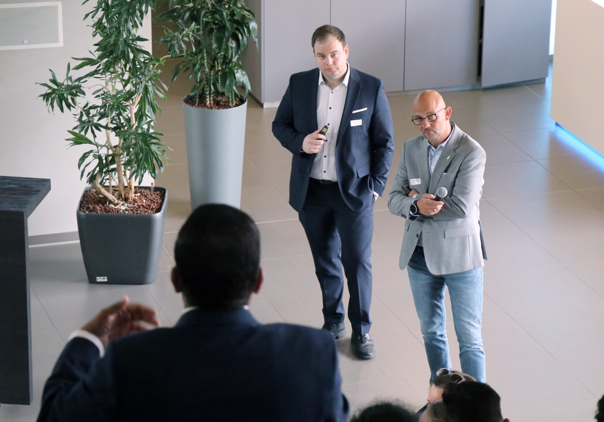 Im Anschluss an die Netzwerkveranstaltung wurde die Delegation mit dem „BOB“ (Batteriebetriebene Oberleitungsbus) der Stadtwerke Solingen zum neuen Standort an der Prinzenstraße, welchen Mirko Novakovic aktuell entwickelt, gebracht. Die indischen Teilnehmer konnten auf der Baustelle die zukünftigen Entwicklungen live erleben. Sie erhielten zudem von Mitarbeitenden der Orangery, welche in dem Gebäude bald attraktive und flexible Büroarbeitsplätze anbieten, einen ersten Eindruck, welche Möglichkeiten hier auf hohem Niveau geboten werden. Anschließend besuchte die Delegation noch das Industriemuseum der Gesenkschmiede Hendrichs inklusive englischsprachiger Führung und das Galileum Solingen. Gegenwart, Geschichte und Zukunft – alles an einem Tag.